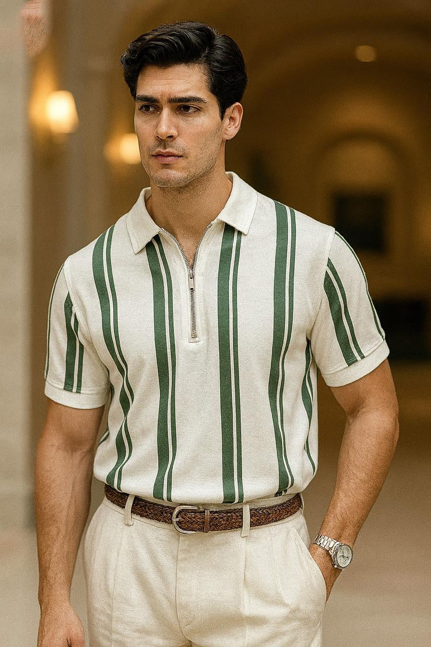 Drop Kulture's Zipper Striped Polo – modern elegance meets retro charm, designed for the man who values understated luxury and timeless style. Classic lines, rich textures — our Zipper Striped Polo defines effortless luxury in every stitch.
